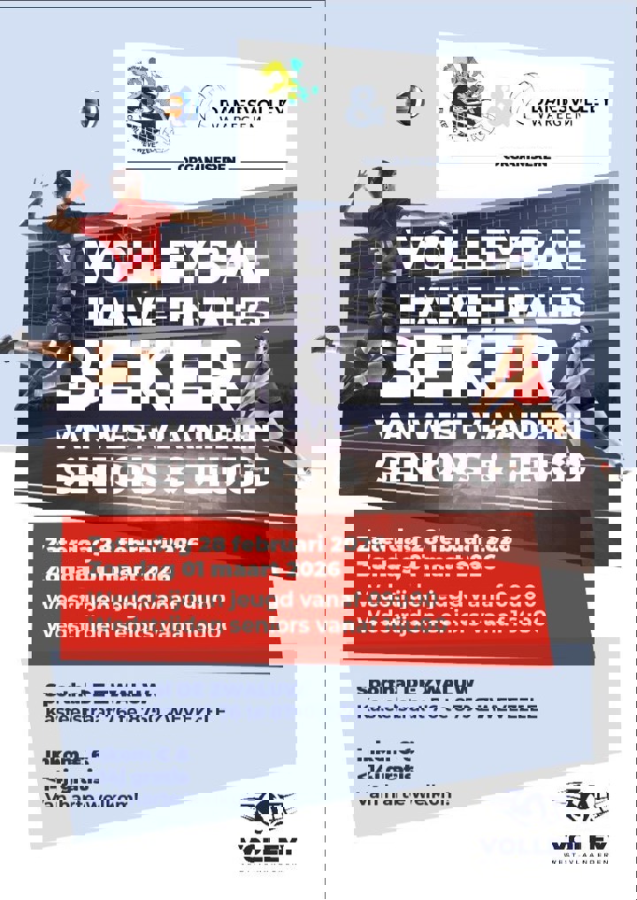 Bovenlokale Volleybal Vereniging Volley West-Vlaanderen (BLVV VWV). Maatschappelijke zetel: Irislaan 7 8470 Gistel peter.vanspeybroeck@telenet.be 0470 61 73 21 0413.671.148